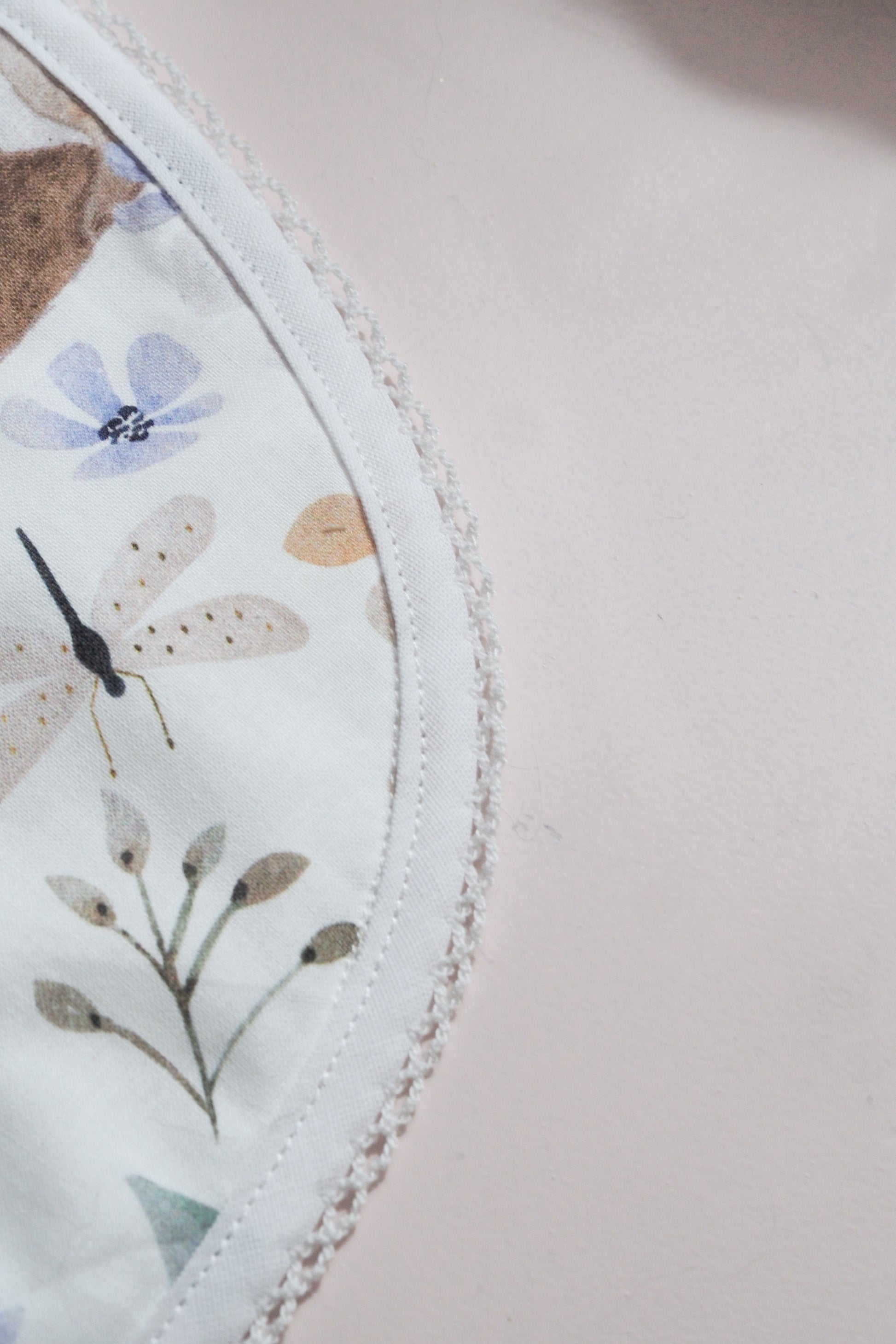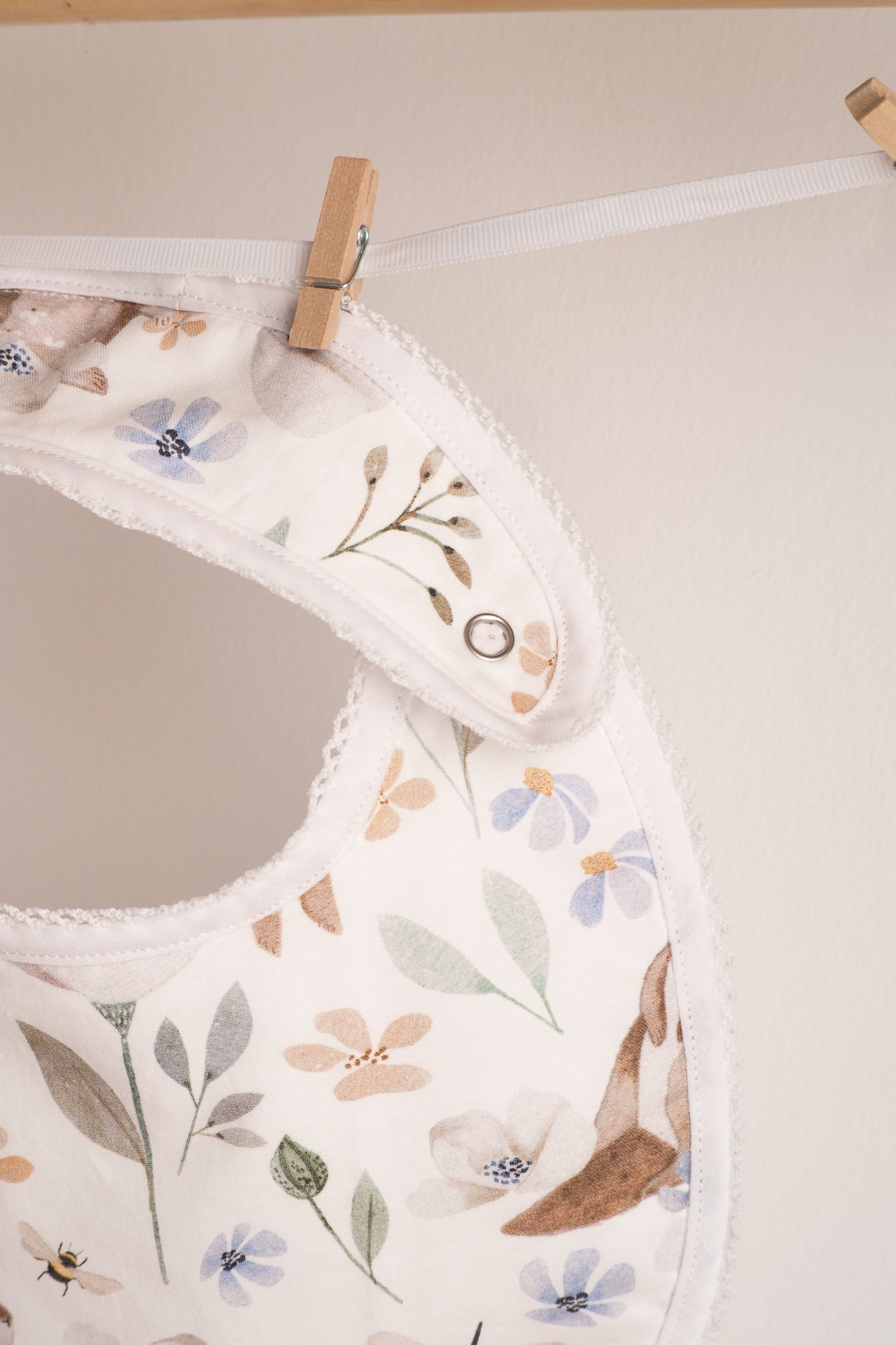 Un bavoir tout en douceur, cousu à la main avec attention.