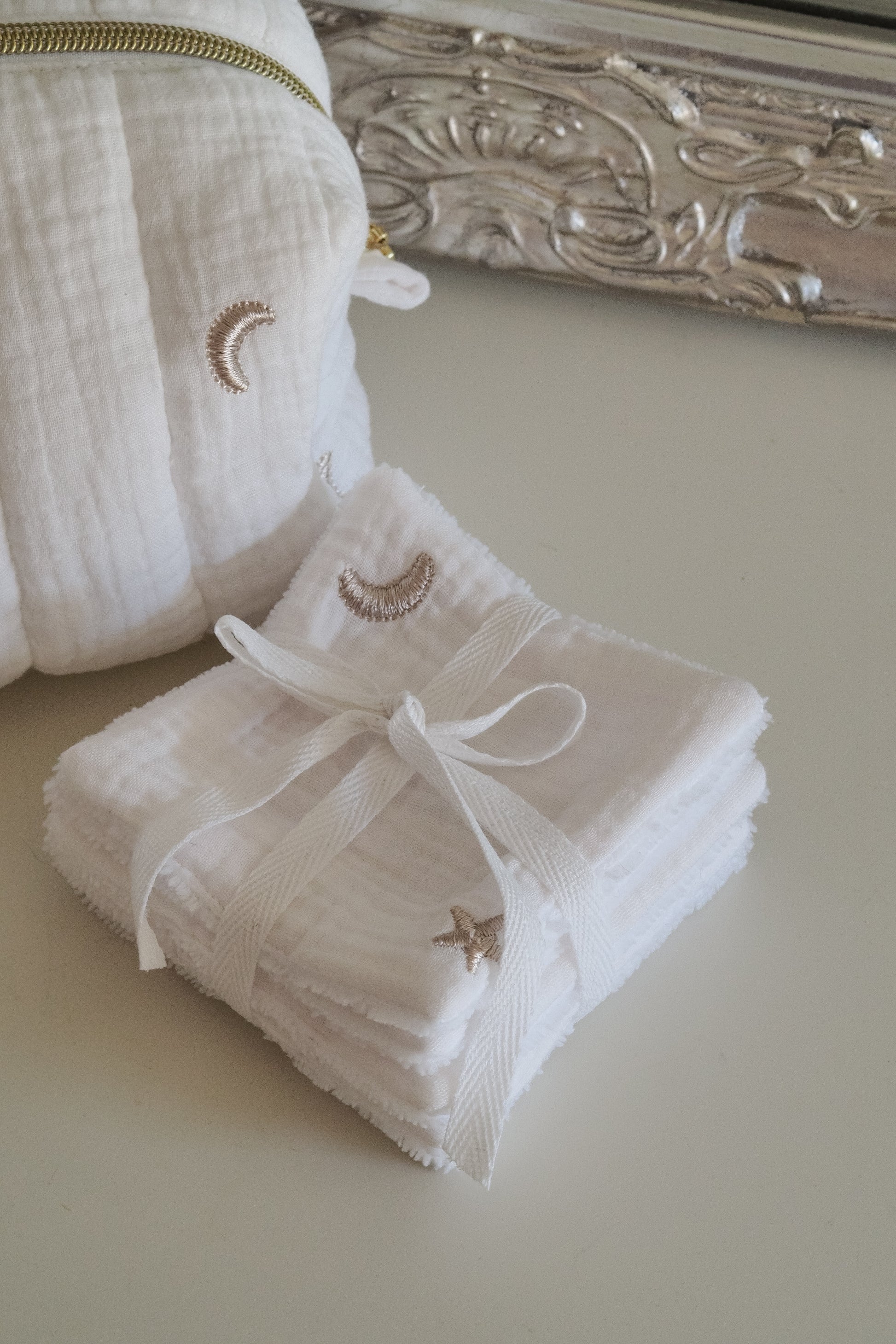 Des cotons réutilisables tout doux pour prendre soin de votre peau et de celle de bébé au quotidien.