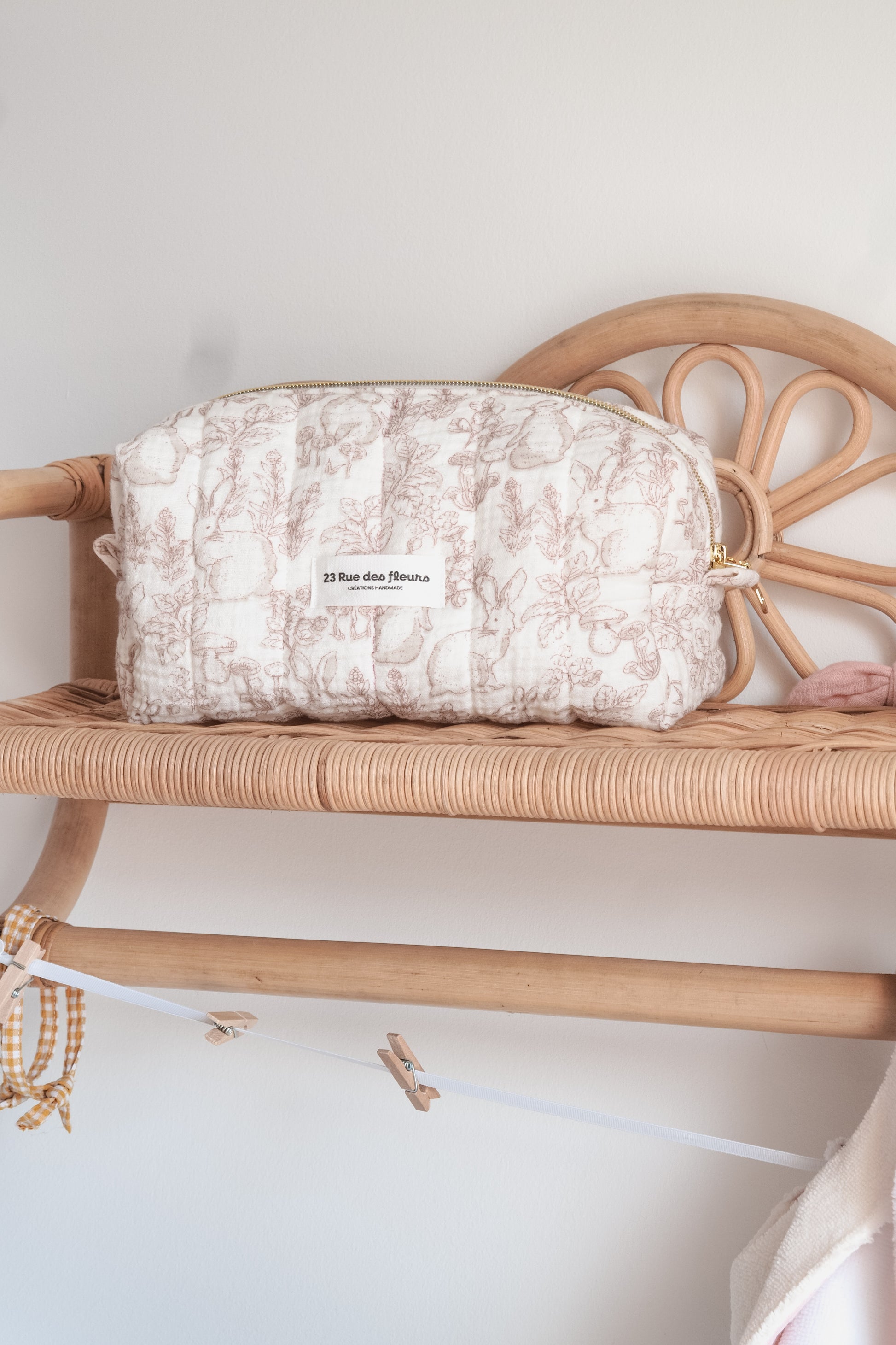 Glissez une touche de douceur dans votre quotidien avec cette trousse de toilette en gaze de coton. Elles rappellent la douceur des pétales et apportent une note poétique à votre salle de bain ou à votre valise. Parfaites à assortir avec le coussin Capucine, elles créent un petit cocon chaleureux et plein de tendresse, comme un bouquet de douceur au fil des jours.